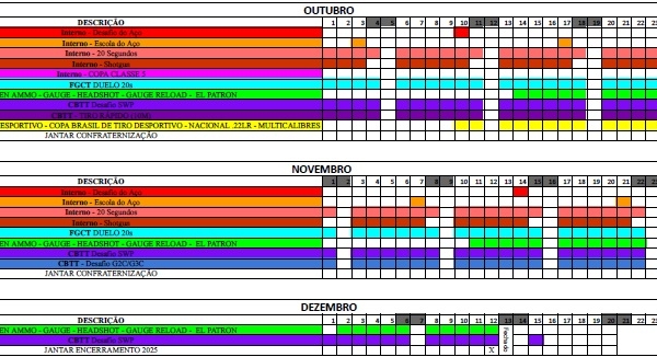 CALENDÁRIO DE PROVAS OUTUBRO – NOVEMBRO – DEZEMBRO – 2025