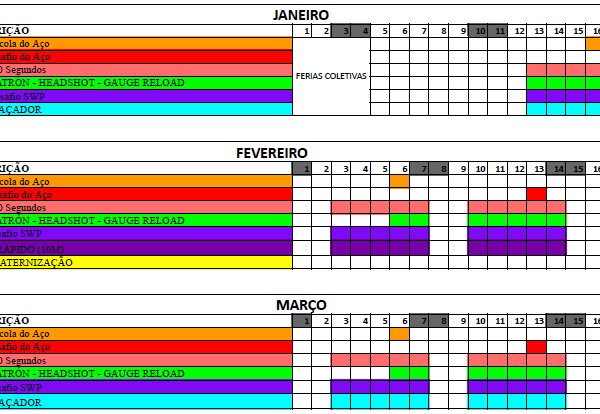 FIQUEM ATENTOS AS DATAS DISPONÍVES PARA CADA CAMPEONATO: Interno – Escola do Aço Interno – Desafio do Aço Interno – 20 Segundos W2C GAMES –
